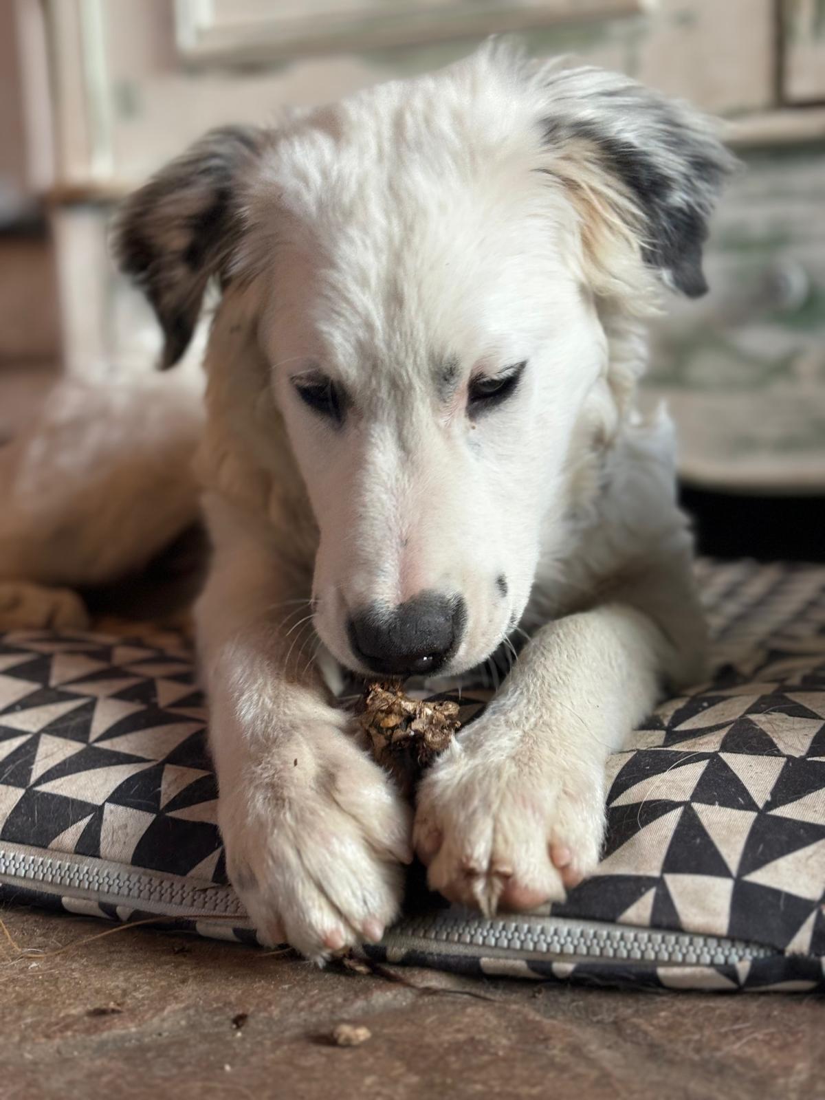Today, Tim is an essential part of the Little Moon’s wonderful family, and he is also the dog’s “substitute human” when Gaelle is busy or away. Additionally, he ihas a permanent position as Assistant Dog Feeder and Head Chef for the humans (his chips are amazing).